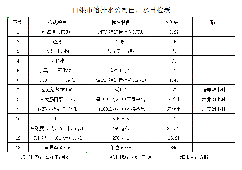 2021年7月8日水质检测报告